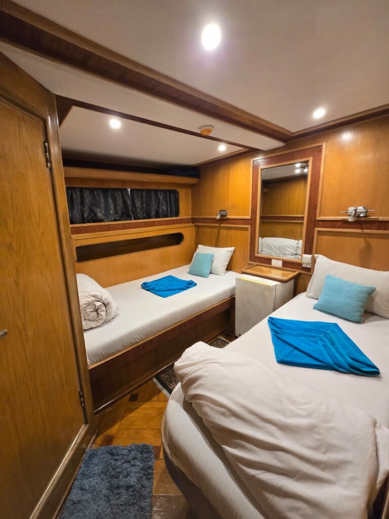 - Premier niveau : 7 cabines à deux lits (dont une avec lit double – supplément possible)